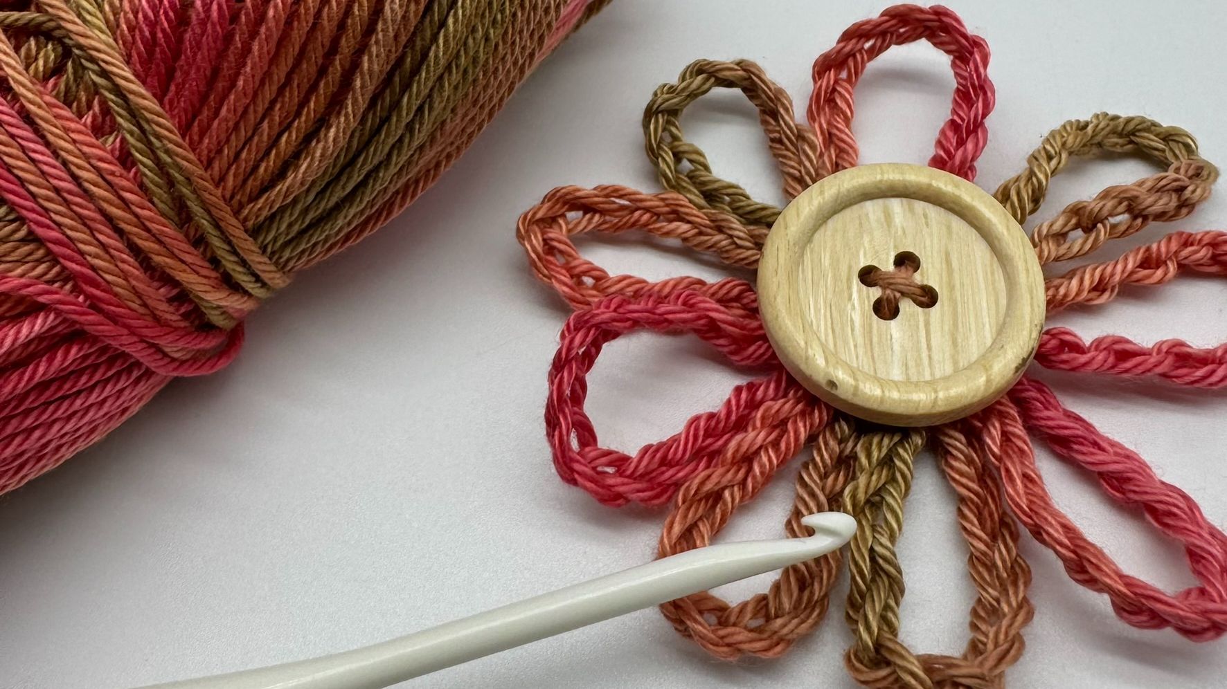 Készítsd el ezt a gombos virágot, kérd az ingyenes kezdő horgolás oktató videót!